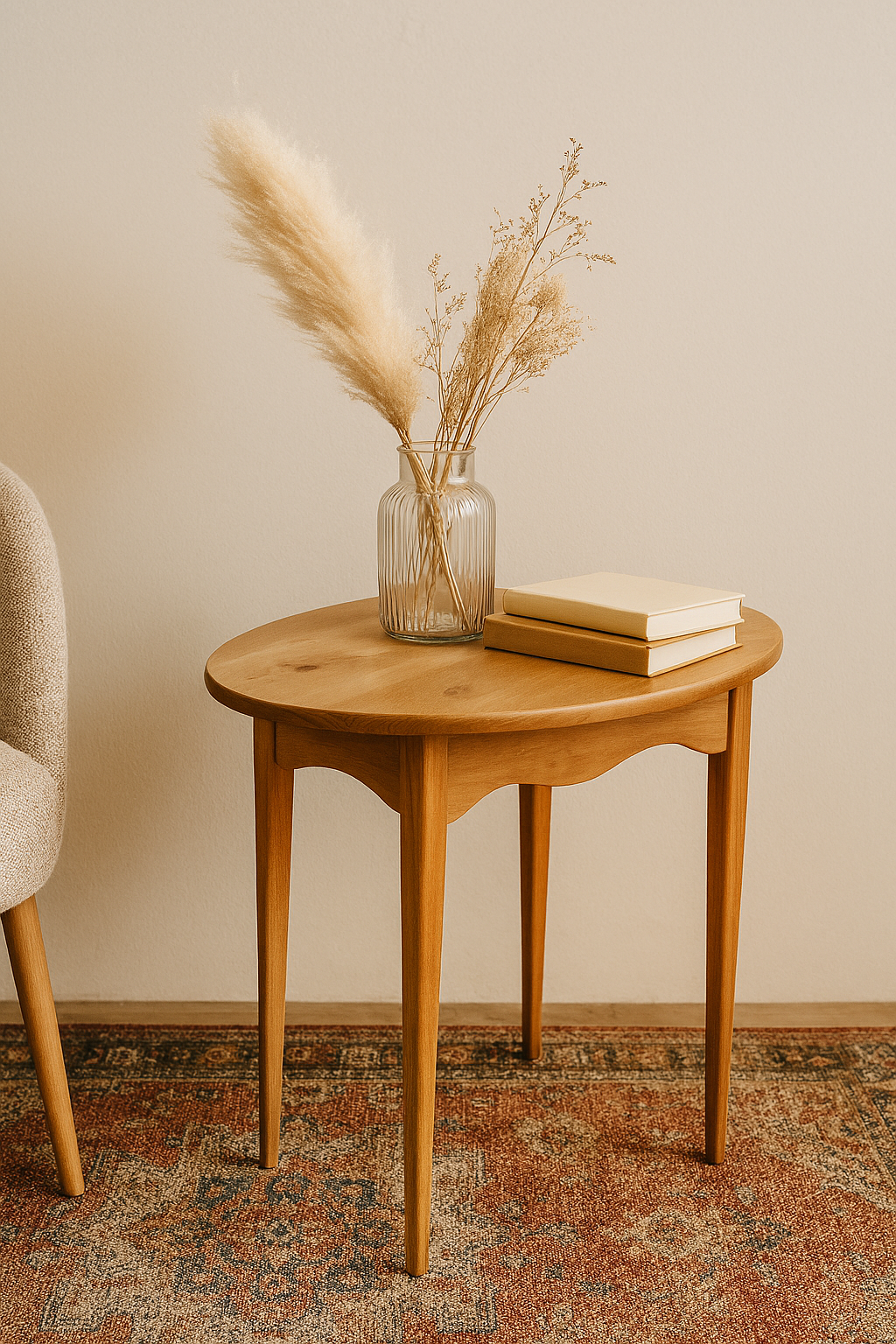 Handcrafted Oval Wood Side Table with Tapered Legs