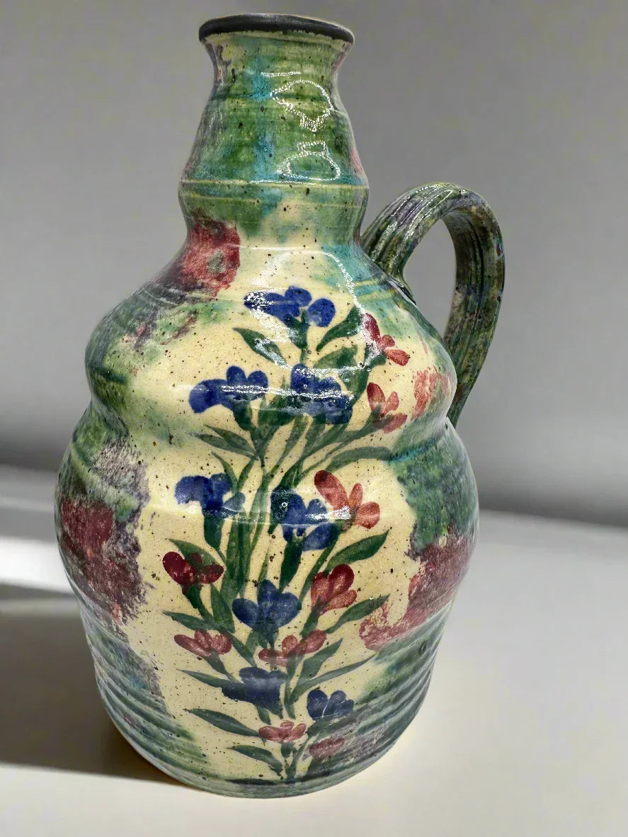 Handmade Multicolor Stoneware Jug - Marbled Glaze & Floral Design | The Marian Collection